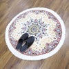 ナイン産の特徴であるベージュカラーをベースに織り上げられた円形絨毯です。