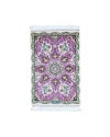 鮮やかな紫を基調に、中央のメダリオンから広がるように織り込まれた草花模様が目を引きます。